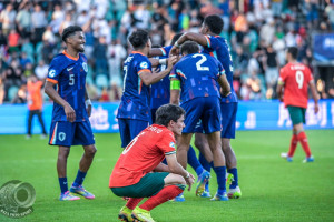 Polscy trenerzy lubią mówić, że wzorują się na różnych szkołach, systemach szkolenia, ale najczęściej się kończy na mówieniu. W Żilinie mieliśmy przedstawicieli najlepszych szkółek – choćby Ajaksu Amsterdam, Benfiki Lizbona, Sportingu Lizbona, można było podejrzeć jak drużynami zarządzają Jorge i Reiziger, jak zachowują się zawodnicy. Mecz był bardzo ciekawy, Holandia od 20 minuty grała w dziesiątkę, musiała zmienić taktykę, Portugalia też. Portugalczycy zmarnowali rzut karny – Geovany Quenda, za rok już zawodnik Chelsea (ze Sportingu Lizbona za… 62 miliony euro) i to trochę ich przybiło. Trafili na dobrze zorganizowanego w tyłach przeciwnika, który rósł z minuty na minutę i w końcu zadał morderczy cios. Po golu Ernesta Poku Portugalia już się nie podniosła. Na trybunach byli szkoleniowcy ze Słowacji, Czech, Węgier, Austrii, Niemiec, młodzież z różnych państw, można było sporo podpatrzeć, nauczyć się od lepszych. Nasi trenerzy (nie licząc tych co nie mogli) mają jednak wakacje, potrzebują odpoczynku, a że komuś się chce teraz grać Euro U-21 to ich dziwi. Mamy przecież czerwiec. W zwycięskiej drużynie Holandii grało 4 piłkarzy mających występy w pierwszej reprezentacji: Devyne Rensch (AS Roma, 2-0), Jorrel Hato (Ajax, 6-0), Ian Maatsen (Aston Villa, 1-1) i Kenneth Taylor (Ajax, 5-0). Kandydatów do gry we wrześniowym spotkaniu eliminacji MŚ 2026 Holandia – Polska jest w U-21 Reizgera więcej. Na razie nikt o tym nie myśli, bo niedługo półfinał Euro z Anglią. Z Żiliny Jaromir Kruk / Fot. BAZA Foto Sport