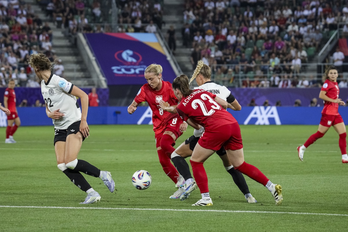 Zespół Niny Patalon przystąpił do boju z Niemkami z nadziejami na sprawienie niespodzianki. Od razu ruszyły do przodu, ale potem rywalki opanowały sytuację, nie miały jednak lekko. W pierwszej części faworytki z trudem dochodziły do bramkowych okazji, a gdy trzeba wykazywała się między słupkami Kinga Szemik z West Ham United. Niestety, nie była w stanie zrobić nic przy kapitalnym uderzeniu Jule Brand w 52 minucie. Piłkarka VfL Wolfsburg zdjęła pajęczynę i dała prowadzenie Niemkom. Potem ekipie Christiana Wucka pomogła bardzo golkiper, Ann-Katrin Berger wygrywając pojedynek sam na sam z Ewą Pajor. Jest takie porzekadło, że w futbolu niewykorzystane sytuacje się mszczą… Chwilę potem znakomita Brand obsłużyła precyzyjnym dośrodkowaniem Leę Schuller z Bayernu, a ta wykorzystała bierność naszych obrończyń. Polki walczyły do ostatniego gwizdka o jak najlepszy wynik, ale nie były w stanie przełamać bardzo dobrze zorganizowanej niemieckiej defensywy. – Każda z dziewczyn dała z siebie wszystko – skwitowała Nina Patalon, selekcjonerka reprezentacji Polski, która wykonuje z nią fantastyczną robotę.